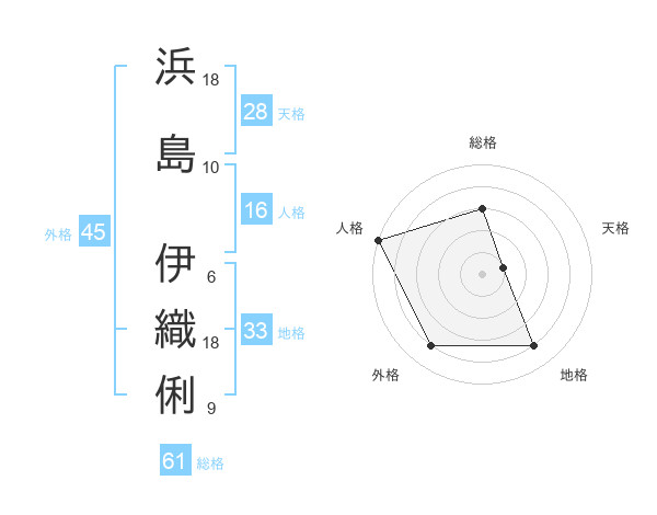 浜島 伊織俐さんを姓名の画数から五運を鑑定