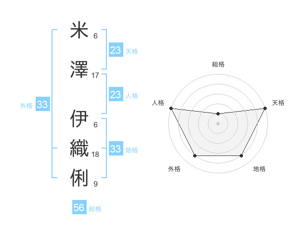 米澤 伊織俐さんの外格は33画の4点
