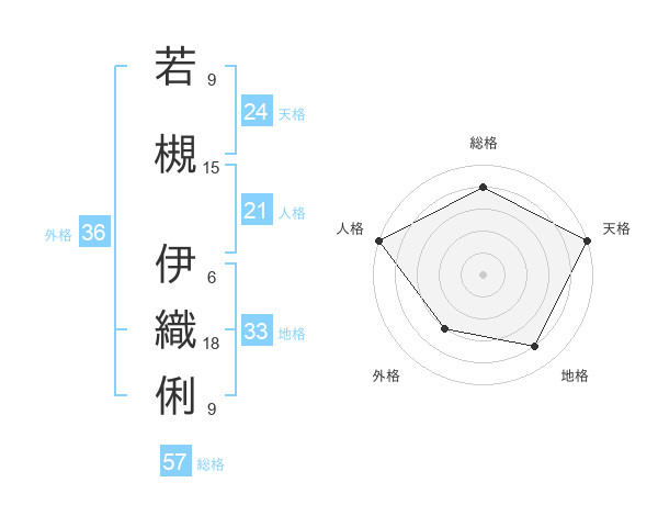 若槻 伊織俐さんの総格は57画の4点!
