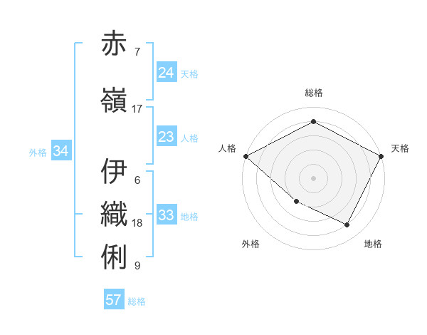 赤嶺 伊織俐さんの外格は34画の2点!