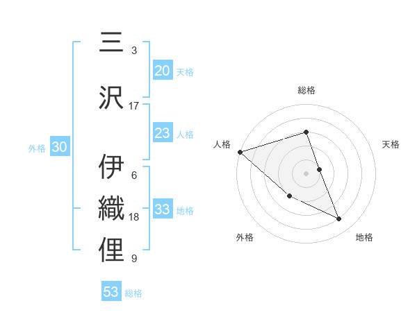 三沢 伊織俚さんを姓名の画数から五運を鑑定