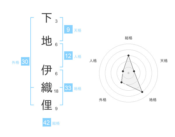 下地 伊織俚さんの地格は33画の4点!