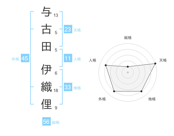 与古田 伊織俚さんを姓名の画数から五運を鑑定