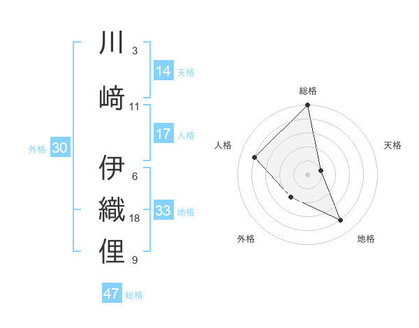 川﨑 伊織俚さんの総格は47画の5点!