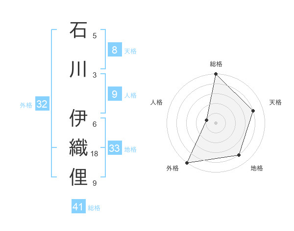 石川 伊織俚さんを姓名の画数から五運を鑑定
