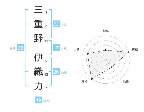 三重野 伊織力さんを姓名の画数から五運を鑑定
