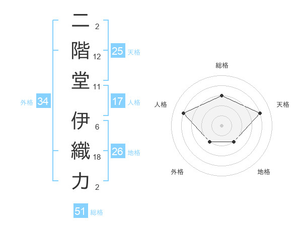 二階堂 伊織力さんの総格は51画の3点!