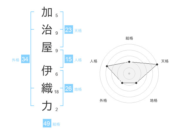 加治屋 伊織力さんを姓名の画数から五運を鑑定