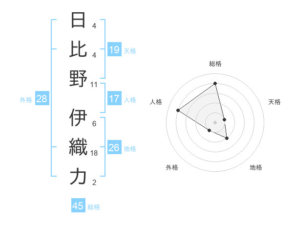 日比野 伊織力さんを姓名の画数から五運を鑑定