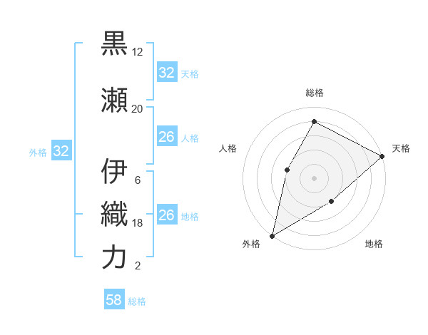黒瀬 伊織力さんを姓名の画数から五運を鑑定