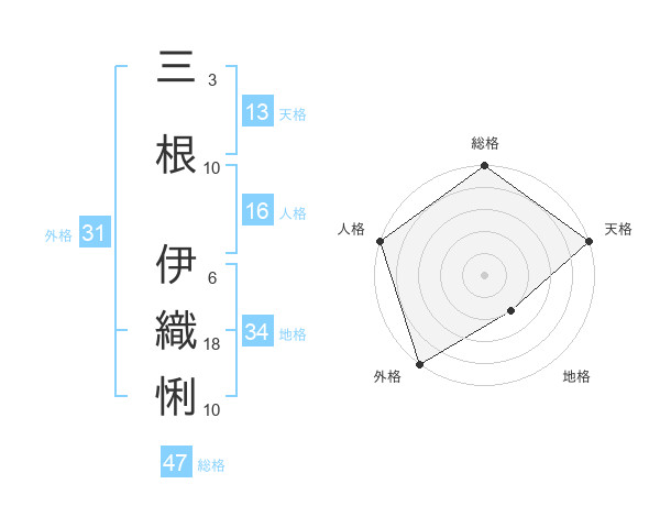 三根 伊織悧さんを姓名の画数から五運を鑑定