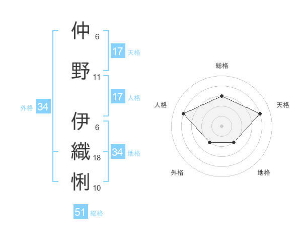 仲野 伊織悧さんを姓名の画数から五運を鑑定