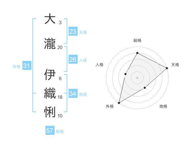 大瀧 伊織悧さんを姓名の画数から五運を鑑定