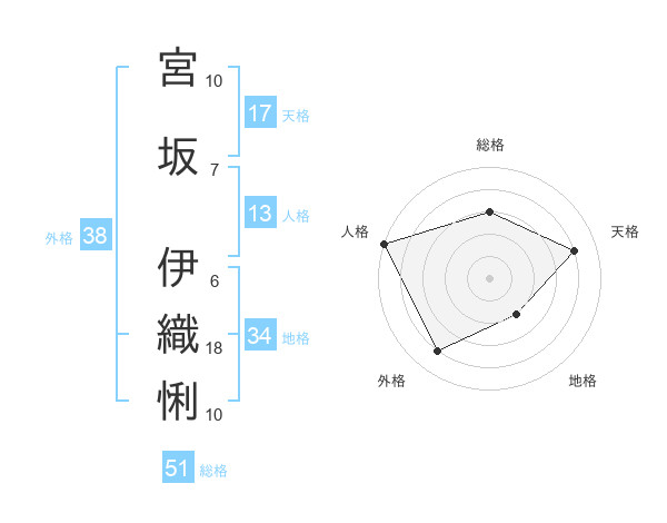 宮坂 伊織悧さんを姓名の画数から五運を鑑定