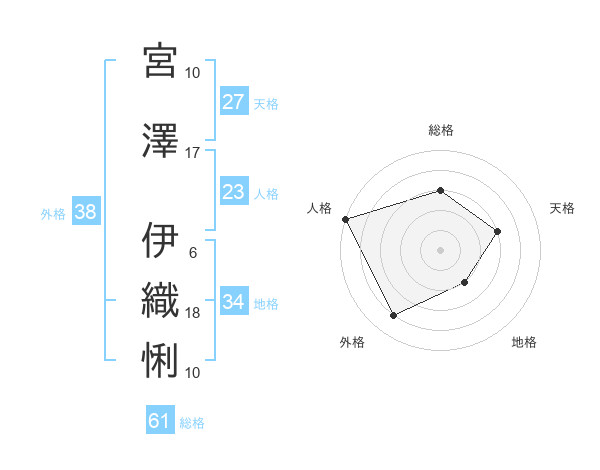 宮澤 伊織悧さんを姓名の画数から五運を鑑定