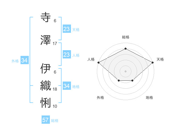 寺澤 伊織悧さんの総格は57画の4点!