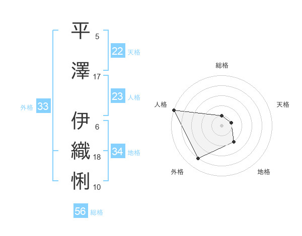 平澤 伊織悧さんの外格は33画の4点!