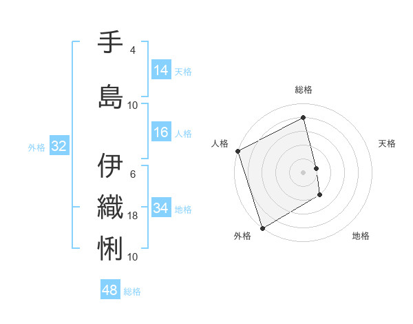 手島 伊織悧さんを姓名の画数から五運を鑑定
