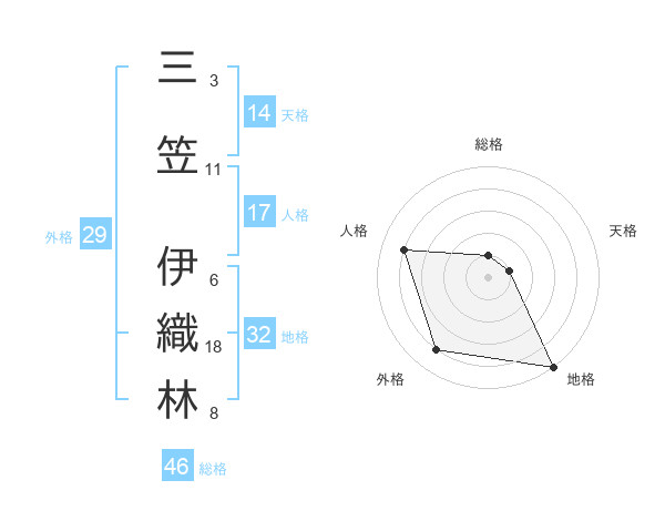 三笠 伊織林さんを姓名の画数から五運を鑑定