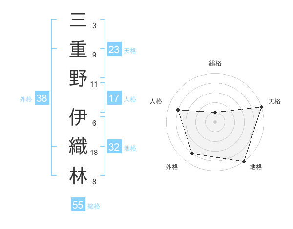 三重野 伊織林さんを姓名の画数から五運を鑑定