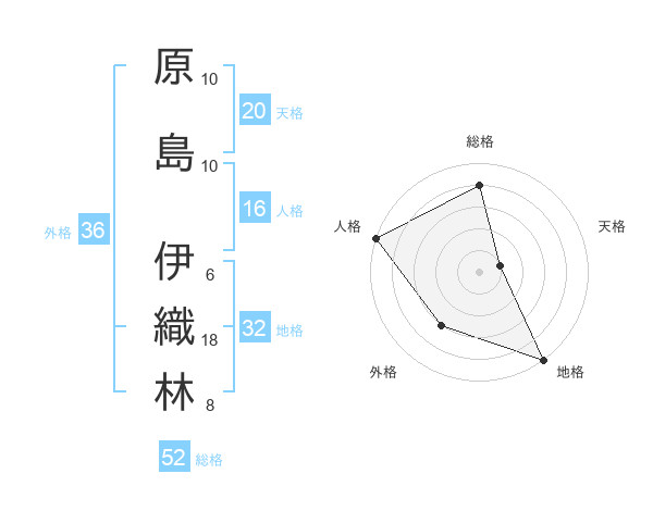 原島 伊織林さんの総格は52画の4点!