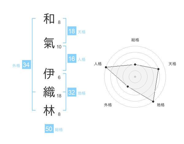 和氣 伊織林さんを姓名の画数から五運を鑑定