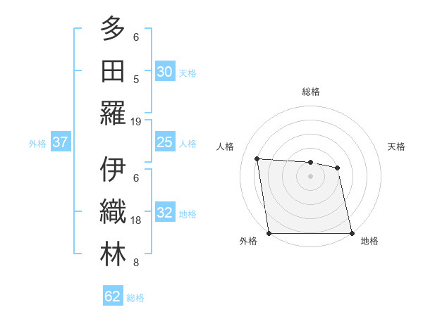多田羅 伊織林さんを姓名の画数から五運を鑑定