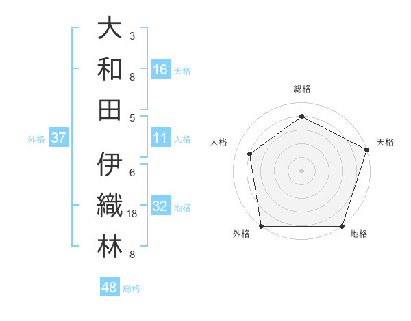 大和田 伊織林さんを姓名の画数から五運を鑑定