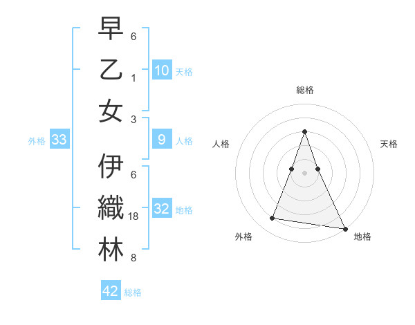 早乙女 伊織林さんの外格は33画の4点!