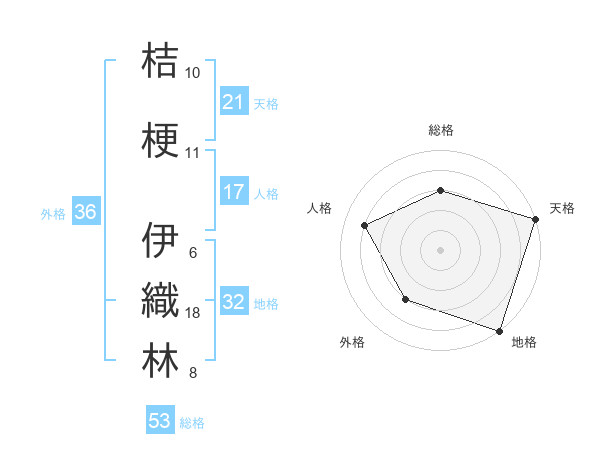 桔梗 伊織林さんを姓名の画数から五運を鑑定