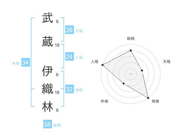 武蔵 伊織林さんの総格は58画の4点!