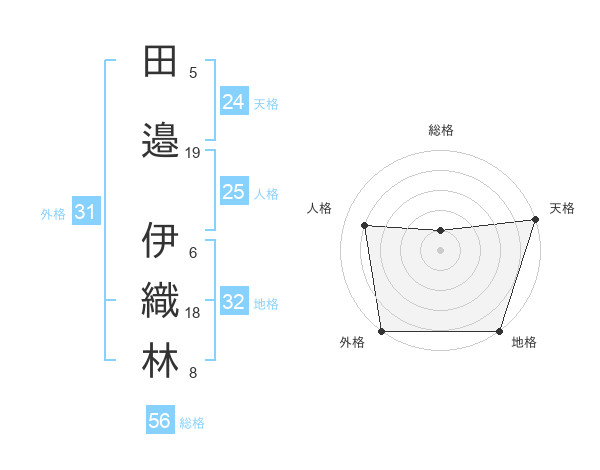 田邉 伊織林さんの総格は56画の1点!