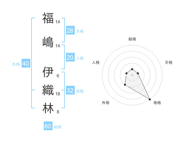 福嶋 伊織林さんを姓名の画数から五運を鑑定
