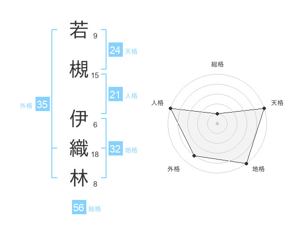 若槻 伊織林さんの総格は56画の1点!