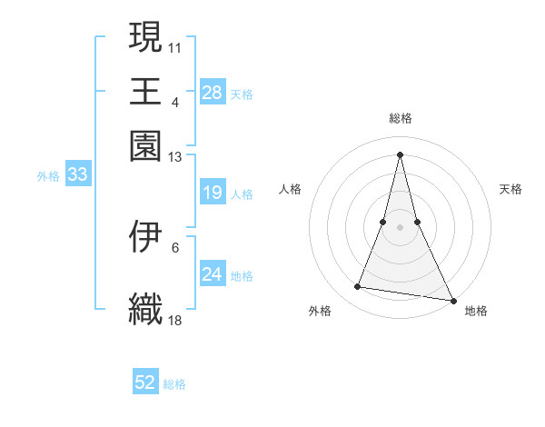 現王園 伊織さんを姓名の画数から五運を鑑定