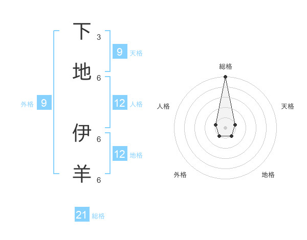 下地 伊羊さんの総格は21画の5点!