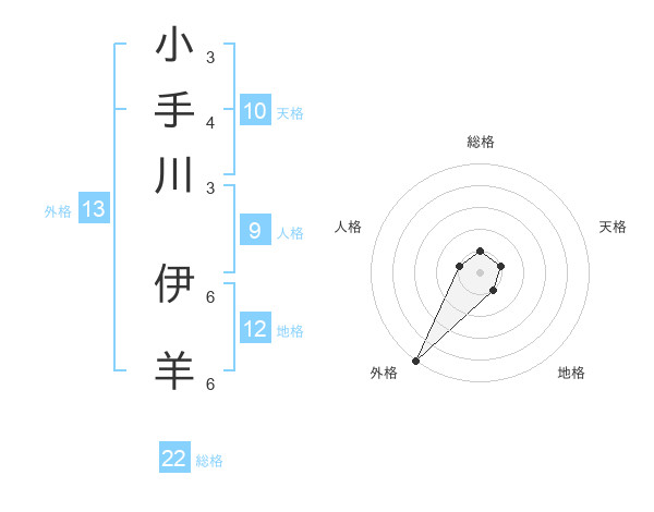小手川 伊羊さんを姓名の画数から五運を鑑定