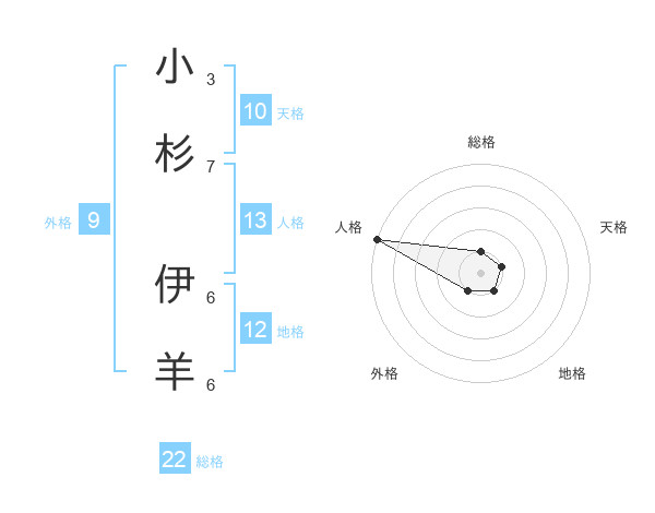 小杉 伊羊さんの総格は22画の1点!