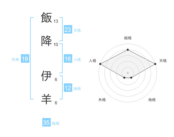 飯降 伊羊さんを姓名の画数から五運を鑑定