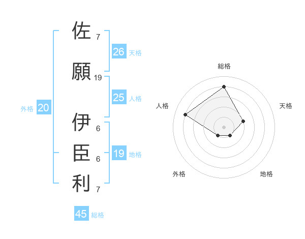 佐願 伊臣利さんを姓名の画数から五運を鑑定