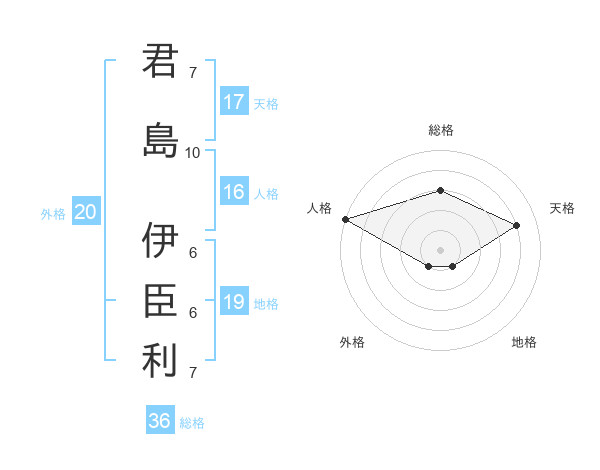 君島 伊臣利さんの天格は17画の4点!