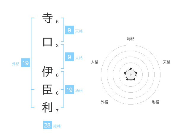 寺口 伊臣利さんを姓名の画数から五運を鑑定