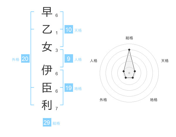 早乙女 伊臣利さんを姓名の画数から五運を鑑定
