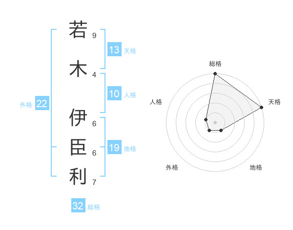 若木 伊臣利さんを姓名の画数から五運を鑑定