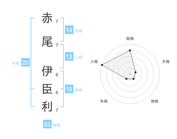 赤尾 伊臣利さんの総格は33画の4点!