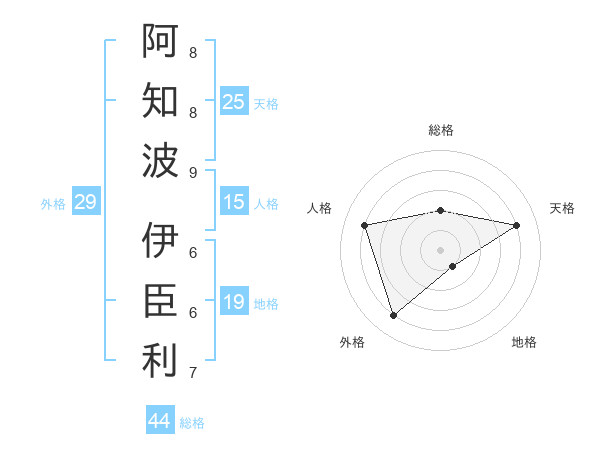 阿知波 伊臣利さんを姓名の画数から五運を鑑定