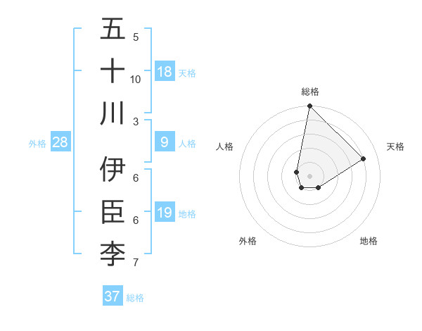 五十川 伊臣李さんを姓名の画数から五運を鑑定