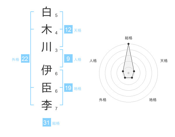 白木川 伊臣李さんを姓名の画数から五運を鑑定