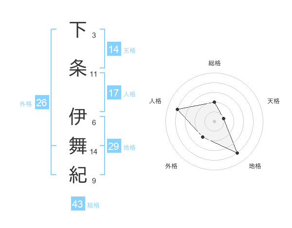 下条 伊舞紀さんを姓名の画数から五運を鑑定