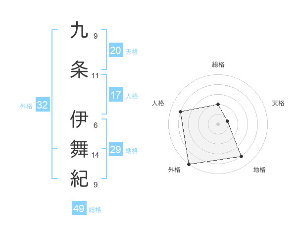 九条 伊舞紀さんを姓名の画数から五運を鑑定